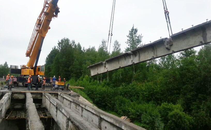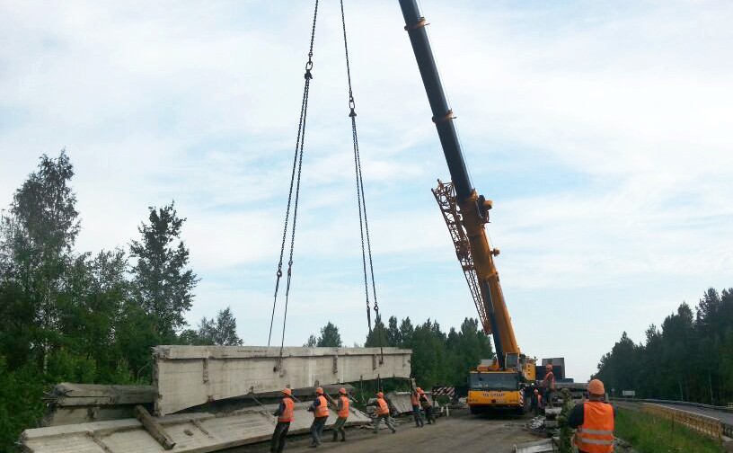 用他自己的汽车起重机,利勃海尔160吨提升能力,把公司建成钢筋混凝土梁的拆除附物沙克村旁边
